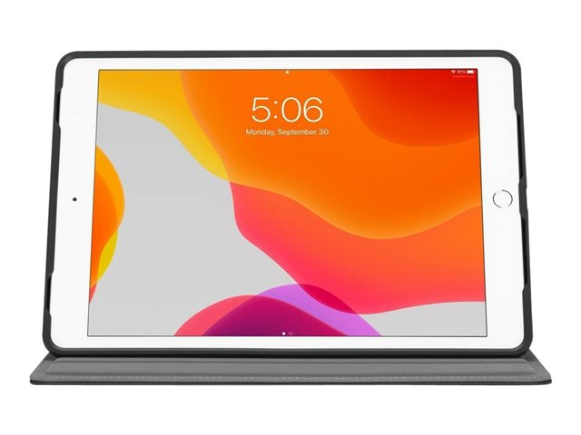La gamme Targus Versavu à succès revient avec un étui pour l'iPad Pro 10,5 pouces et iPad 10,2 pouces. Comprend une coque rotative ajustée, qui offre une orientation mains libres en mode portrait ou paysage permettant d'accéder aux ports de l'iPad et à l'appareil photo. La technologie SoundScoop intégrée à l'étui autour des haut-parleurs de votre appareil améliore et dirige le son vers vous. La couverture avant est dotée d'un intérieur doux pour protéger l'écran de l'appareil et de rainures profondes dans la mousse pour fournir des angles permettant une vision et une frappe confortables. Ce design d'étui emblématique révèle le célèbre logo de l'iPad Apple au dos de votre appareil lorsque vous l'utilisez.