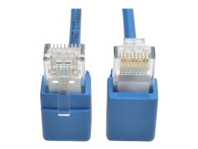 Eaton Tripp Lite Series Right-Angle Cat6 Gigabit Snagless Molded Slim UTP Ethernet Cable (RJ45 M/M), Blue, 2 ft. (0.61 m) - Cordon de raccordement - RJ-45 (M) pour RJ-45 (M) - 61 cm - UTP - CAT 6 - moulé, connecteur à angle droit, sans crochet, bloqué - bleu