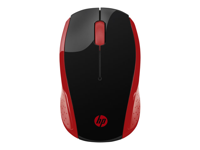 HP 200 - Souris - droitiers et gauchers - optique - sans fil - 2.4 GHz - récepteur sans fil USB - rouge - pour HP 20, 22, 24, 27, 460; Pavilion 14, 15, 24, 27, 590, 595, TP01 2HU82AA#ABB