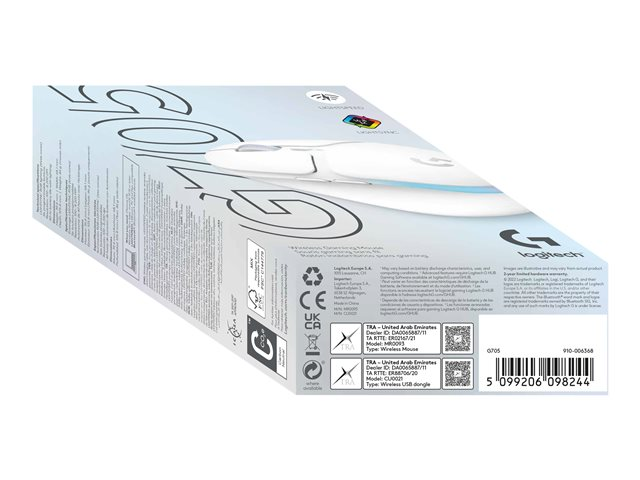 Logitech G G705 - Souris - petites mains - 6 boutons - sans fil - Bluetooth - récepteur USB Logitech LIGHTSPEED - blanc