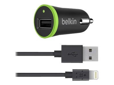 Belkin BOOST UP Car Charger+Cable - Adaptateur d'alimentation pour voiture - 12 Watt (USB) - noir - pour Apple iPad/iPhone/iPod (Lightning) F8J121BT04-BLK