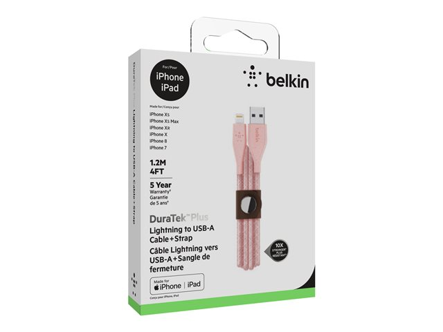 DuraTek, la technologie avancée de durabilité, permet de renforcer votre câble, à l'intérieur comme à l'extérieur, afin d'offrir un câble Belkin extrêmement robuste. Grâce à son design élégant, le câble s'intègre à tout environnement. La sangle permet quant à elle d'enrouler le câble et d'éviter les enchevêtrements.