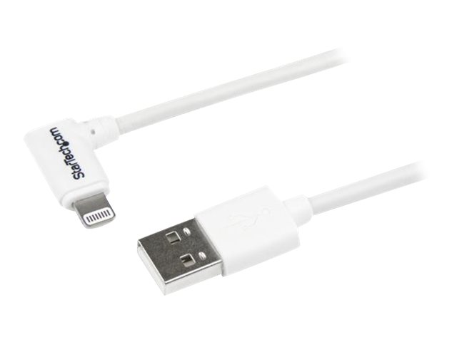 StarTech.com Câble Apple Lightning coudé vers USB de 1 m - Cordon de charge / synchronisation à angle droit ou gauche - M/M - Blanc - Câble Lightning - Lightning mâle pour USB mâle - 1 m - blanc - connecteur incliné - pour P/N: USB2PCARBK, USB2PCARBKS, USBLT2PCARW, USBUB2PCARB USBLT1MWR
