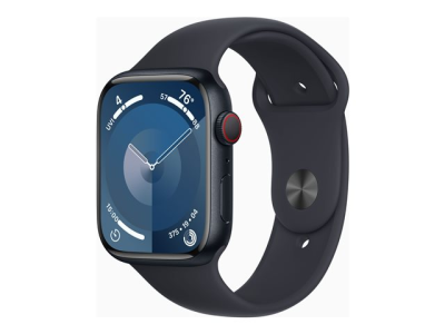 Apple Watch Series 9 (GPS + Cellular) - 45 mm - aluminium minuit - montre intelligente avec bande sport - fluoroélastomère - minuit - taille du bracelet : M/L - 64 Go - Wi-Fi, LTE, UWB, Bluetooth - 4G - 39 g MRMD3QF/A