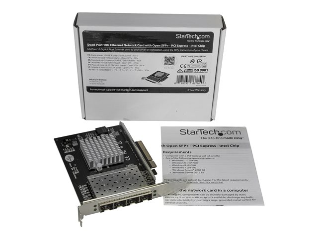 StarTech.com Carte réseau PCI Express - SFP+ PCIe 4 ports - Chipset Intel XL710 - 10 Gigabit Ethernet - Carte Ethernet pour serveur - Adaptateur réseau - PCIe x8 - 10 Gigabit SFP+ x 4 - noir PEX10GSFP4I