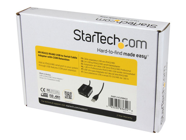 StarTech.com Câble Adaptateur Professionnel de 1.80m USB vers RS422/485 - Mémorisation de Port COM - Adaptateur série - USB - RS-422/485